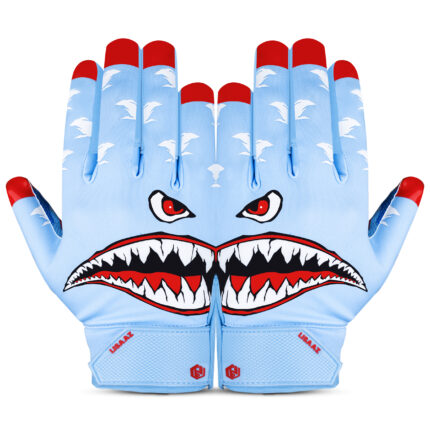 LISAAZ Limited Shark Edition Fit Youth Football Gloves – Tacky Receiver Gloves for Kids 8-12 Blue